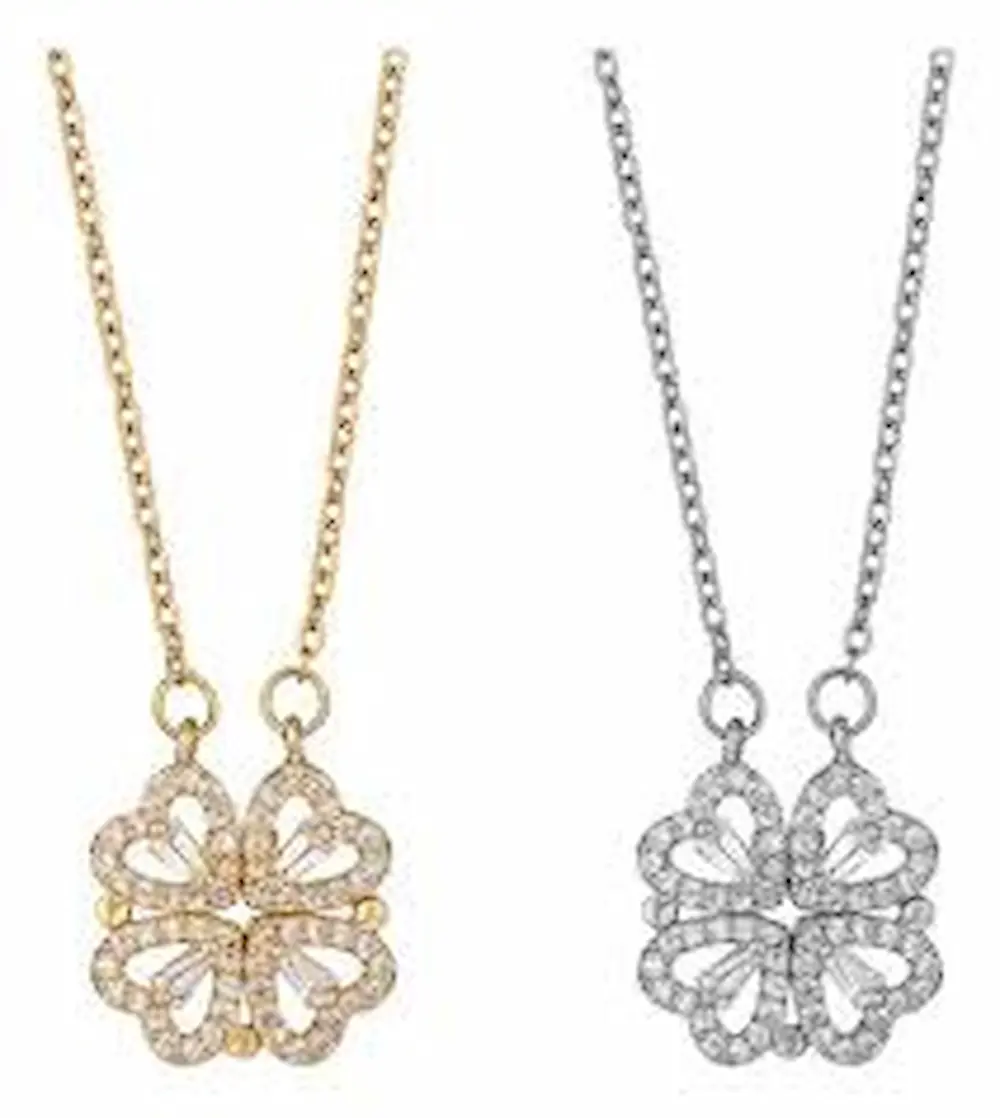 Colgante con delicado dije con strass dorado o plateado.